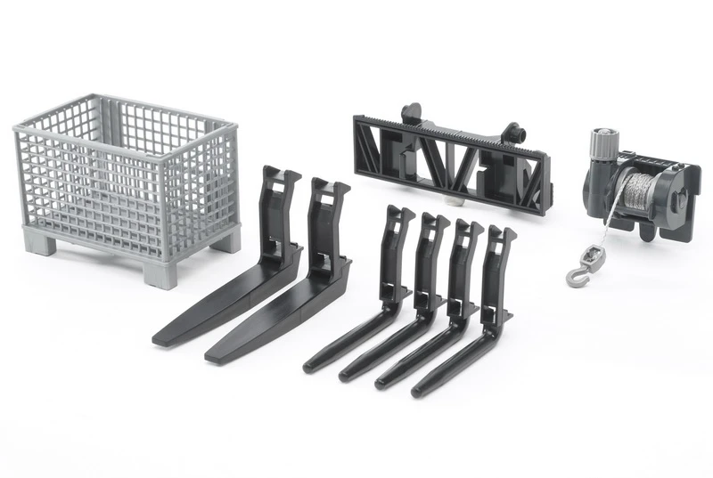 BRUDER (02318) – Zubehör: Gitterpalette, Seilwinde und Frontladergabeln