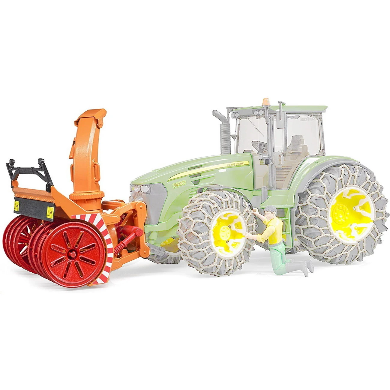 In schneereichen Wintern ist jeder Räumdienst auf effiziente Technik angewiesen. Die neue BRUDER Schneefräse ist ‚just like the real thing‘ mit einer angetriebenen, drehbaren Fräswalze ausgestattet und mit den Traktoren der 2000er, 3000er und 4000er Reihe, LKW’s und dem MB Unimog der Profiserie durch die mitgelieferten Adapter kombinierbar. Damit können Kinder die Schneebeseitigung realistisch nachspielen. Die drehbare Fräswalze wird über ein Reibrad angetrieben. Der Auswurf der Schneefräse kann um 360 Grad gedreht werden.
